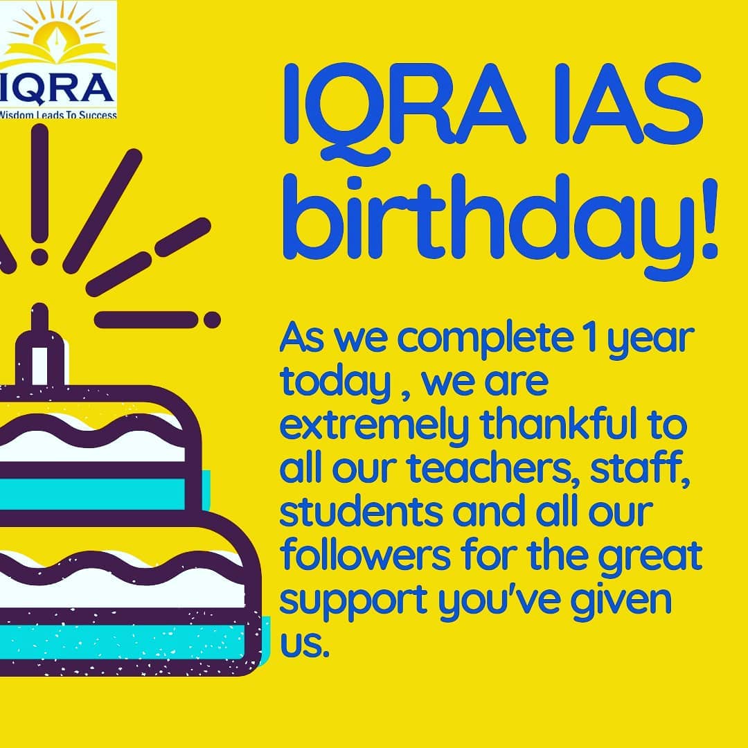 IQRA IAS celebrates it’s first anniversary today ie. 25th November 2019, we are extremely thankful to all our teachers, staff, students and all our followers for the great support you’ve given us.