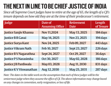 - Though the final word on appointing the next CJI technically lies with the Centre, by convention the Centre tends to appoint whoever the presiding CJI recommends as her successor.