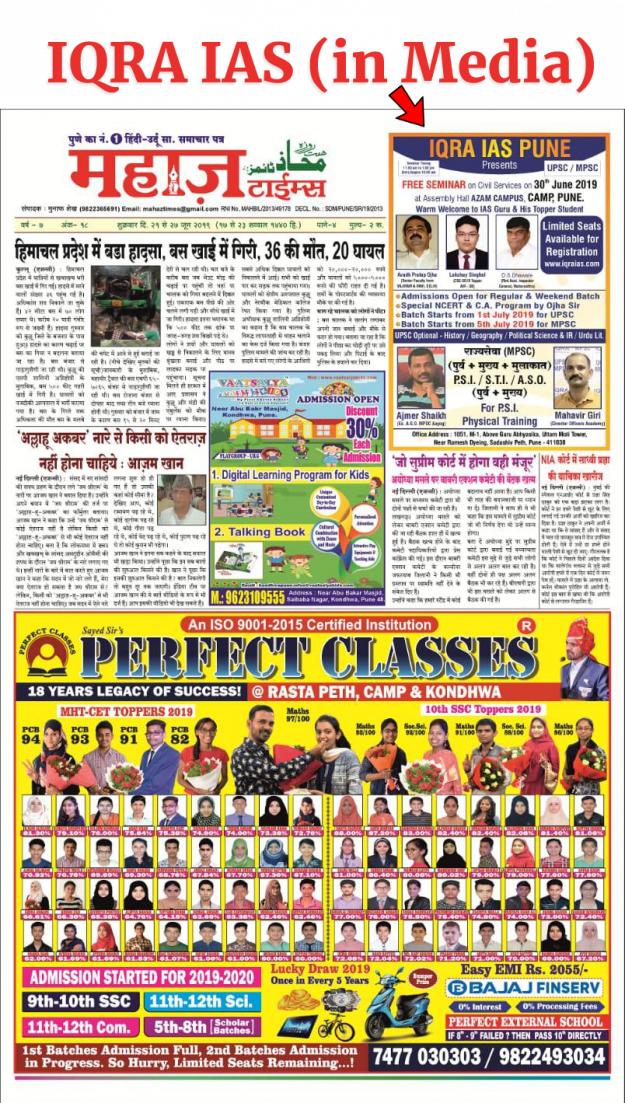 IQRA IAS Conducted Successful Seminar on 30 June 2019, at PUNE