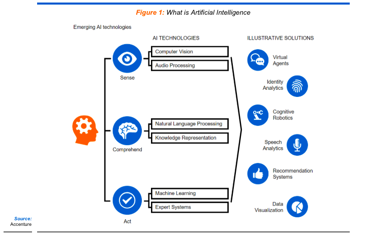 Speaking in simpler terms, AI and its applications with other technologies like Sensors, robotics, etc can enable performing actions that would otherwise require Human Intelligence. Examples – Siri, Alexa, Autonomous cars, ChatGPT, etc.