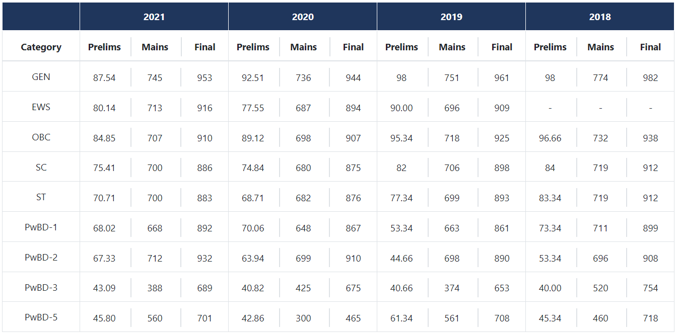 - Interview/ Personality Test: The interview is the final stage of the examination. Marks obtained in the interview are added to the marks in the Mains exam to prepare the final merit list. Personality Test is worth 275 marks.
